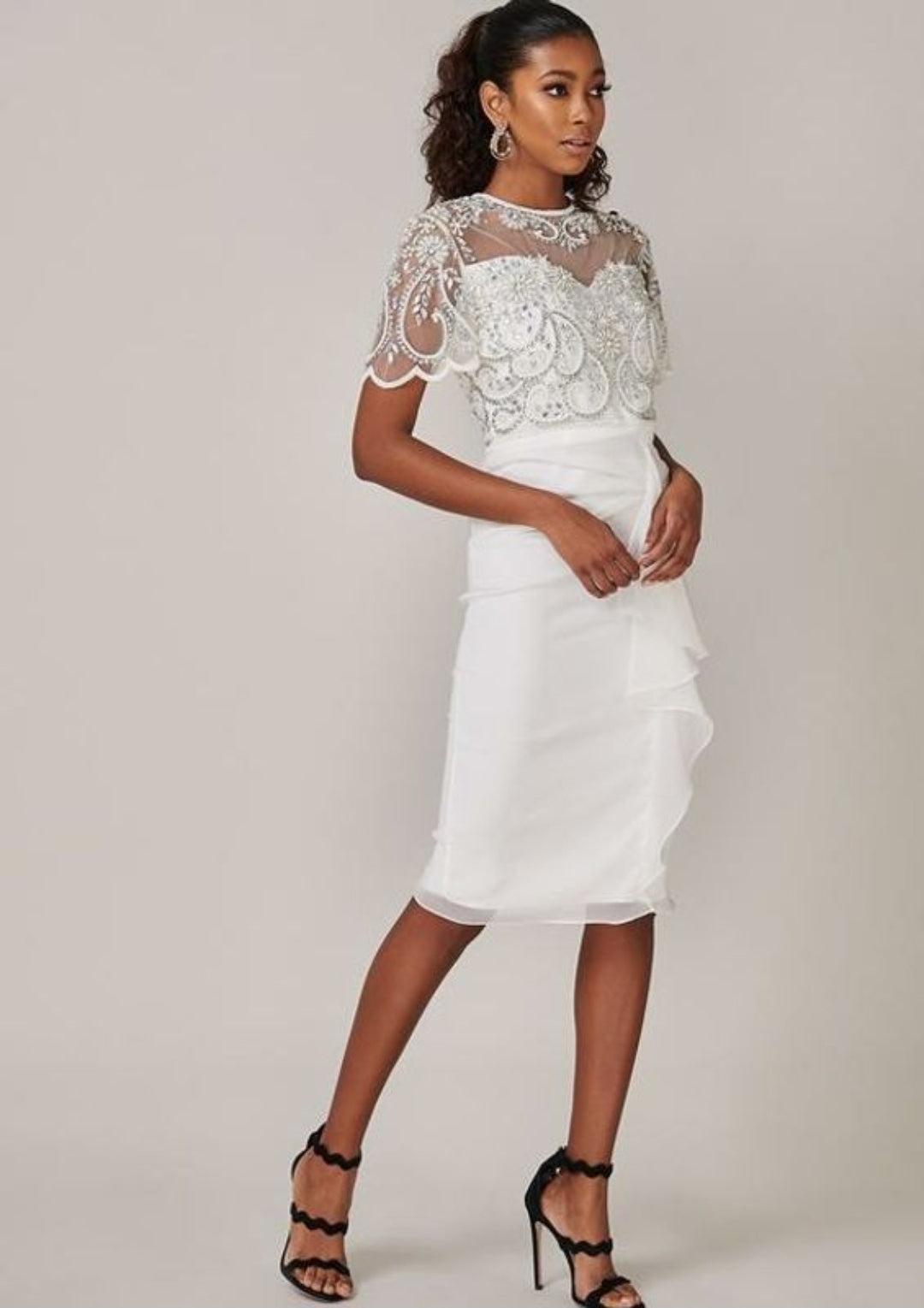 Virgos Lounge Eloise Dress Made from a lightweight poly fabric Short sleeve statement dress featuring asymmetric embellishment